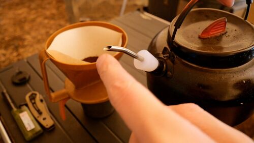 キャンプで珈琲をドリップする時、ケトルからお湯を注ぐとジャバジャバ出ちゃいますよね… 余裕があればドリップケトルを持っていくのですが、珈琲のためだけに持っていくのも邪魔です。 ってことで、ケトルの先に装着するドリップ注ぎ口を試してみました♪ ケ…